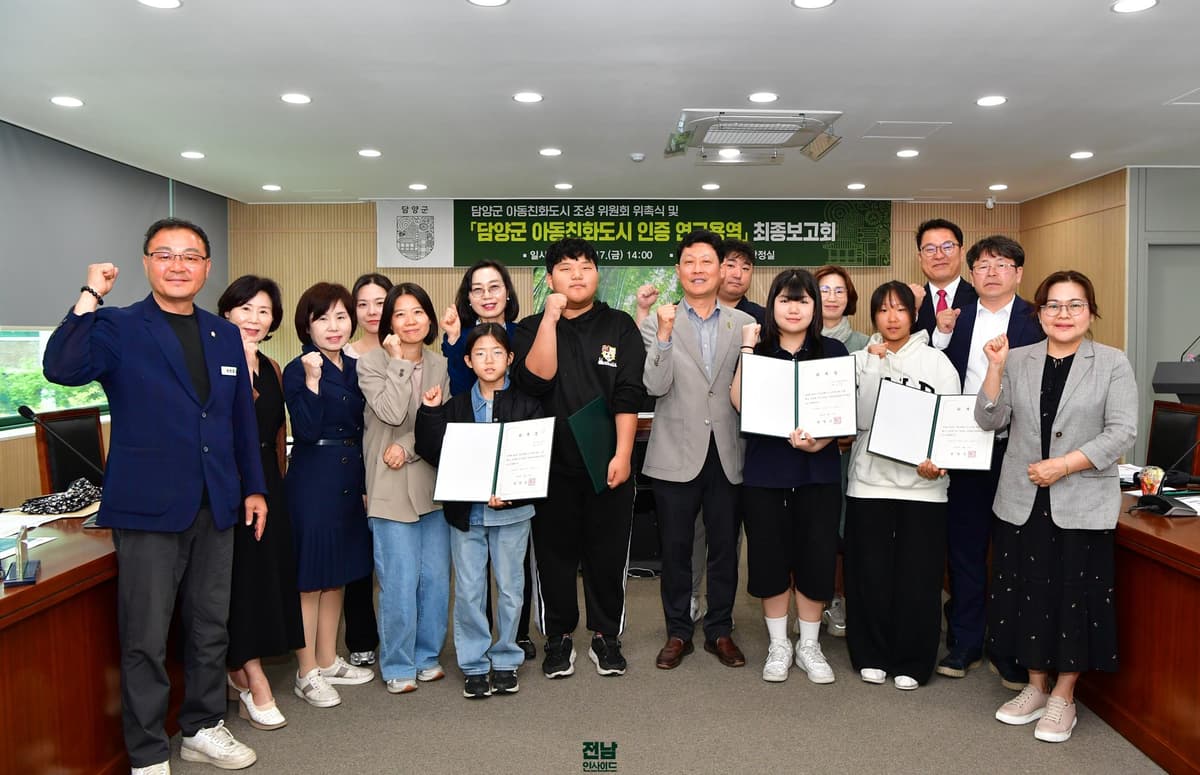담양군은 지난 17일 군청에서 아동친화도시 추진위원회와 아동권리옹호관, 아동참여위원회 관계자들이 참석한 가운데 1차 연구용역 최종보고회를 개최했다. 이날 함께 진행된 위촉식은 아동 권리 보호를 위한 민관 협력 거버넌스의 형태를 갖췄다는 점에서 의미가 있다.